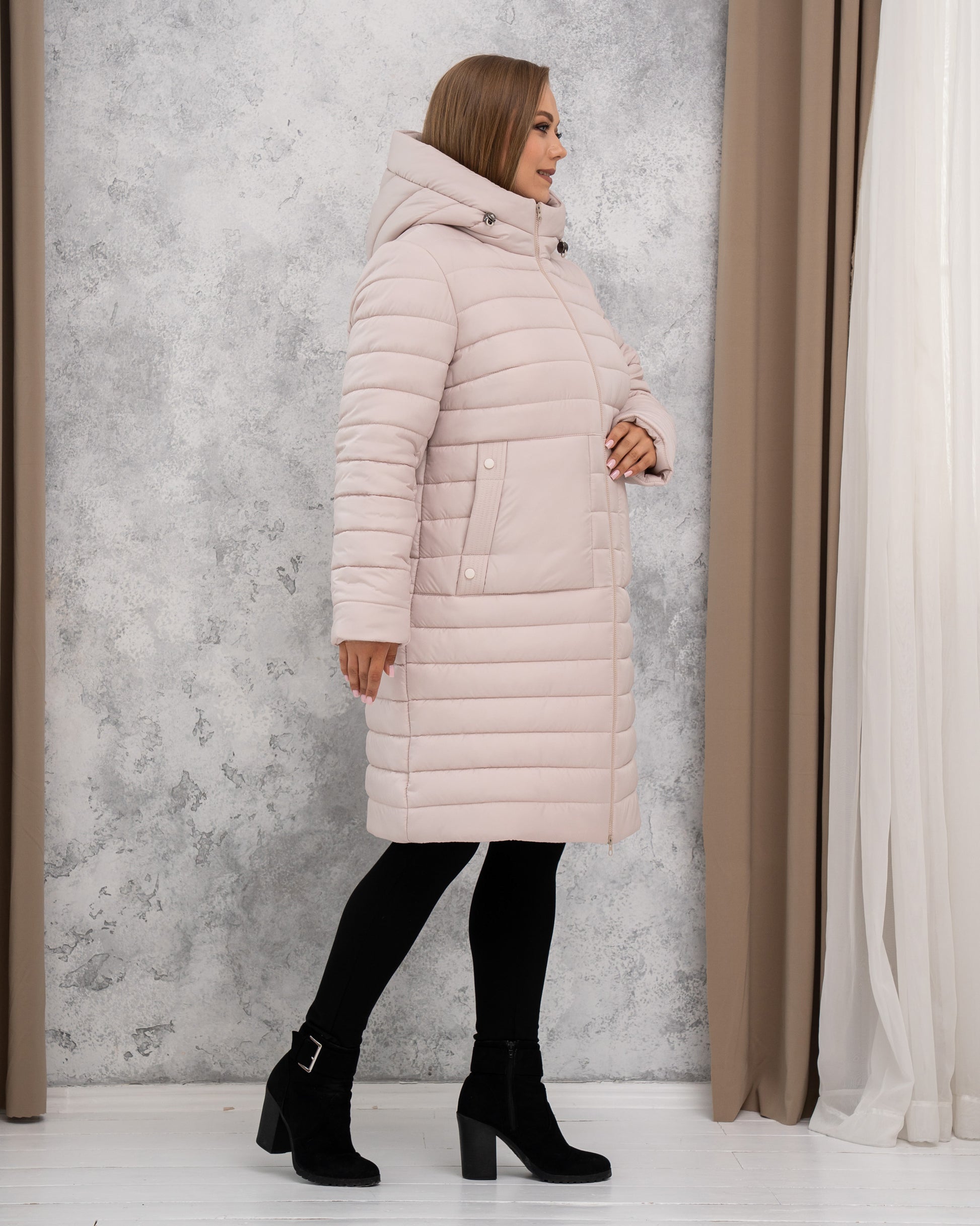 Damen-Steppjacke, mittellang (pudriges Taupe)